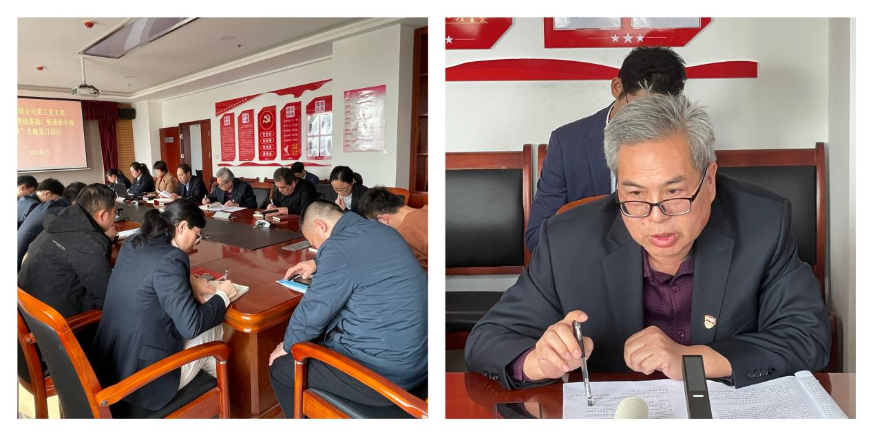 按照市委組織部《關(guān)于認(rèn)真開展2023年2月黨支部主題黨日活動的通知》要求,結(jié)合水投公司黨委安排部署,2月6日下午,第三支部組織黨員、各科室負(fù)責(zé)人和群眾代表開展了“夯實理論基礎(chǔ),暢談新年規(guī)劃”主題黨日活動。