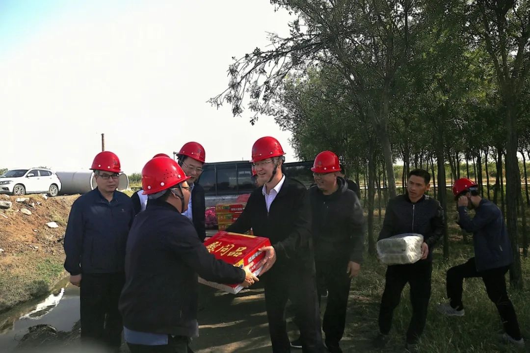 佳節(jié)情意濃,慰問(wèn)暖人心。在慶祝新中國(guó)成立75周年之際,10月1日上午,公司黨委書記、董事長(zhǎng)薛文兵到常硝渠項(xiàng)目工地開展安全帶班檢查并慰問(wèn)一線員工,隨后前往姚暹渠鹽湖段現(xiàn)場(chǎng)了解項(xiàng)目設(shè)計(jì)情況。市水工局有限公司、市水利勘測(cè)設(shè)計(jì)院相關(guān)人員參加。