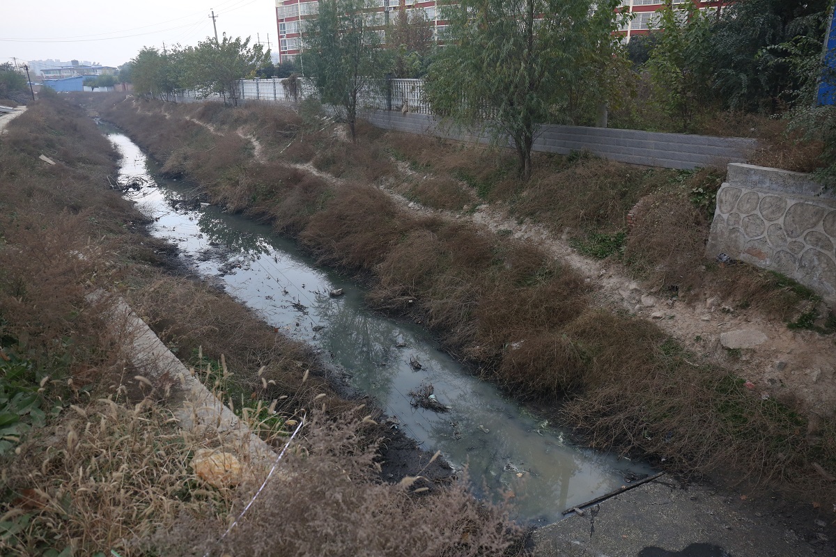 工程總長5005 米,上游連接“姚暹渠(苦池閘—運三高速)綜合治理工程”末端,由于多年不行洪,渠道淤積嚴重,行洪能力大為降低。加之隨著城市的快速發(fā)展,兩岸居民、企業(yè)隨意排放污水入渠,致使渠內(nèi)水體被嚴重污染,形成黑臭水體,急需治理。