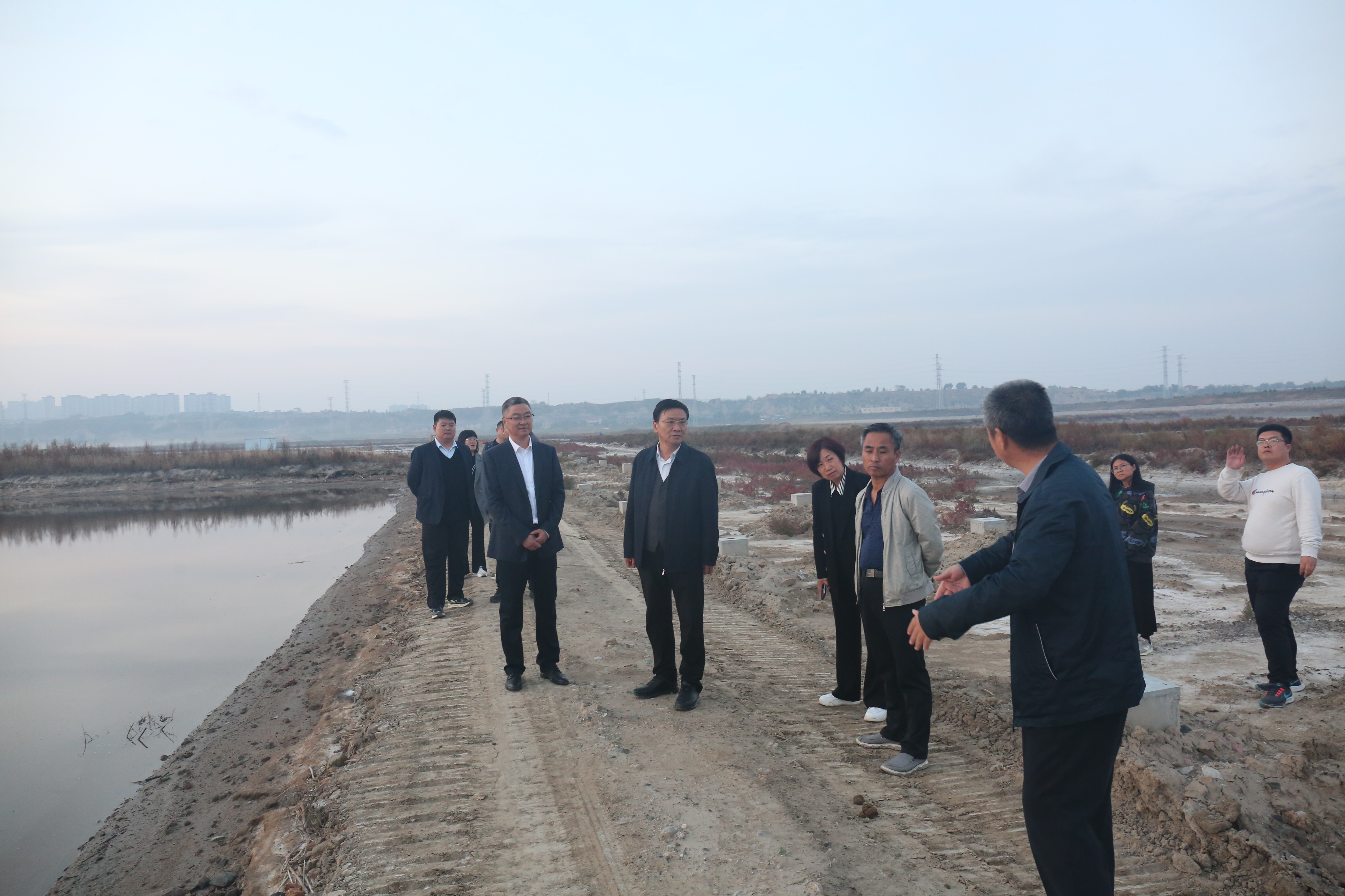10月27日下午,公司董事長崔作銘帶隊調(diào)研鹽湖堤埝治理項目(一期)木棧道施工現(xiàn)場。總經(jīng)理薛文兵、副總經(jīng)理楊素平參加。