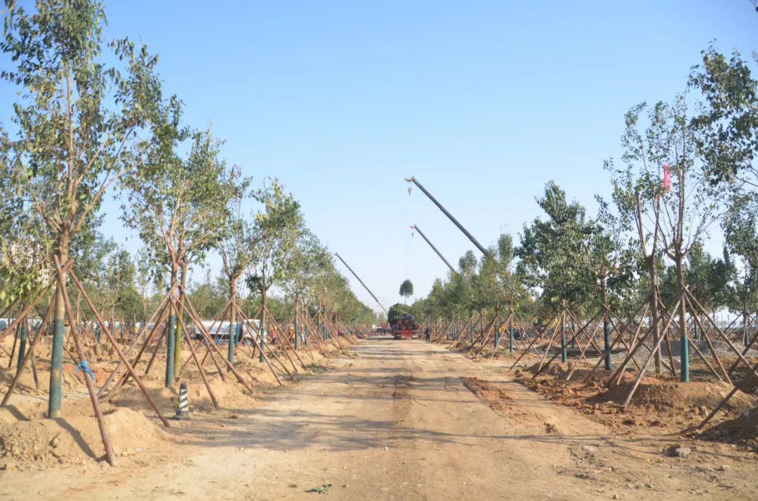 施工現(xiàn)場,大型機械集中作業(yè),挖掘機、裝載機、吊裝機和運輸車來回穿梭,九十余名工人辛勤勞作,相互配合,干勁十足,按設(shè)計規(guī)定放線挖坑、吊裝樹木、培土壓實,防護林建設(shè)有序進行。栽植過程中,多次討論研究,結(jié)合鹽池生態(tài)環(huán)境,統(tǒng)籌考慮,因地制宜選擇當?shù)卦灾矘浞N,目前已種植國槐、榆樹、大葉女貞、紅葉石楠、大葉黃楊、金森女貞、麥冬等各類喬灌木草種共計700余株,綠化種植面積2萬多平米,綠化建設(shè)將進一步對鹽湖北側(cè)岸帶生態(tài)系統(tǒng)起到很好的防護作用。