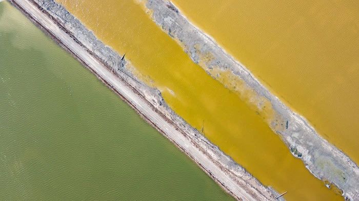 運城鹽湖是世界三大硫酸鈉型內(nèi)陸鹽湖之一,總面積約132平方公里,形狀宛如一條玉帶,蜿蜒在中條山下。鹽湖中的藻類和鹽水蟲繁殖,造成湖水變幻出各種顏色,七彩兼?zhèn)?,宛如一個巨型調(diào)色盤,各色顏料飽滿流溢、異彩紛呈。