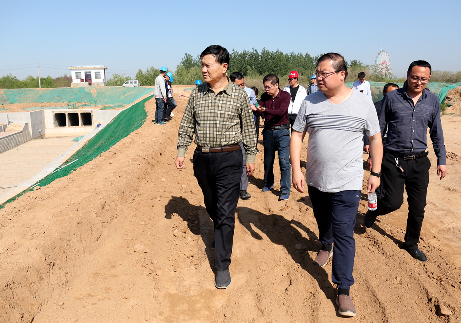 4月份以來,針對姚暹渠空港段項目施工中雨水浸泡、步道綠化、高壓電塔加固、污水管網(wǎng)重疊等問題,公司董事長崔作銘帶領公司相關人員多次深入施工現(xiàn)場,逐段實地查看,會同項目公司、設計單位、監(jiān)理單位、項目部,共商破解對策,提出破解辦法,有效保證了工程建設順利推進。